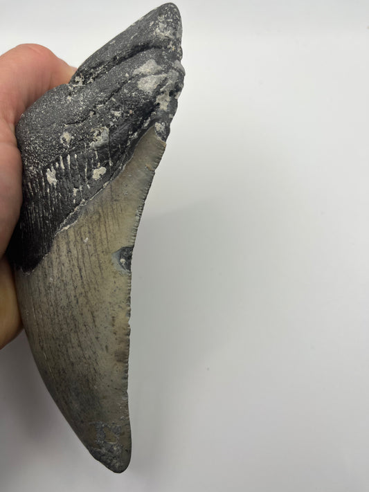 5.7” Megalodon Tooth from a 57’ prehistoric shark! Great size, nice serrations, nice bourlette. All teeth are hand recovered in 100+ feet of water by scuba divers off North Carolina. You’re the second human to hold this tooth!