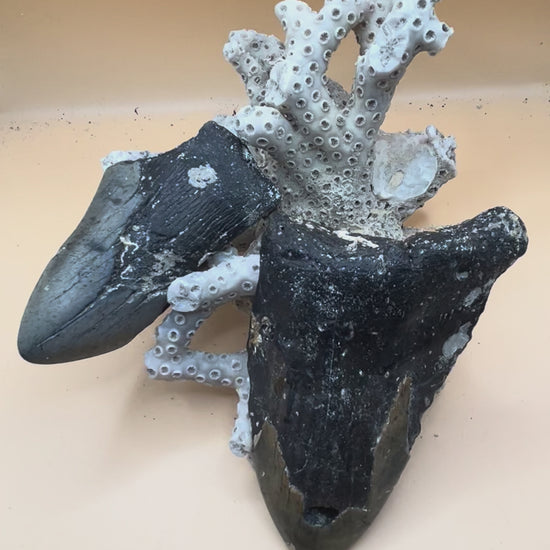4.5” & 3.5” Megalodon Tooth from a 45’ & 36’ prehistoric shark! Great size. All teeth are hand recovered in 100+ feet of water by scuba divers off North Carolina. You’re the second human to hold this tooth! Check out Megalodon Tooth Huntress on social medias to see find videos. Tooth only; coral, calipers etc not included with tooth.