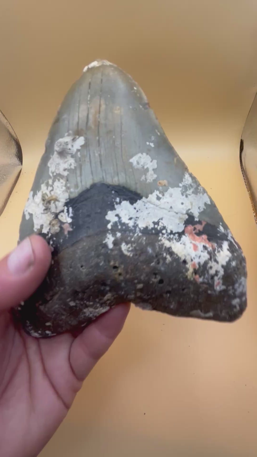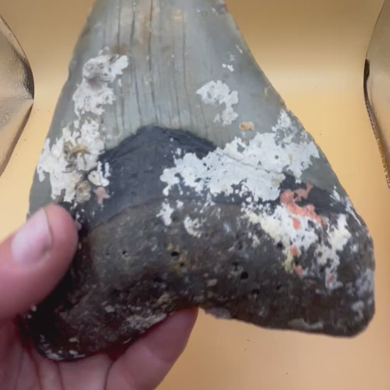 5.5” Megalodon Tooth from a 55’ prehistoric shark! Great size, nice bourlette & serrations. All teeth are hand recovered in 100+ feet of water by scuba divers off North Carolina. You’re the second human to hold this tooth! Check out Megalodon Tooth Huntress on social medias to see find videos. Tooth only; coral, calipers etc not included with tooth.