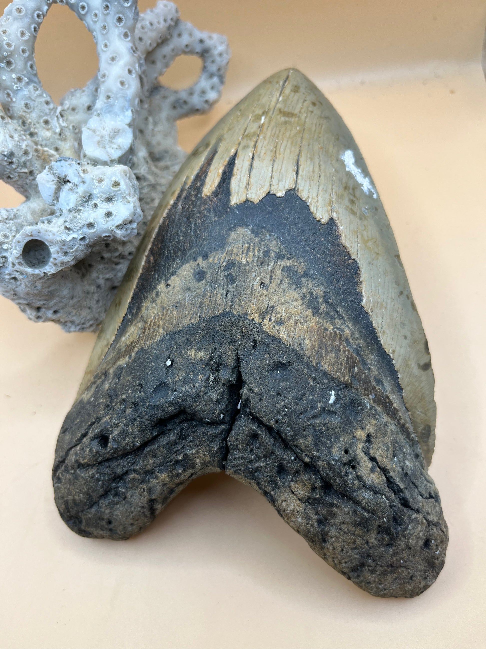 6.5” x 4.6” Megalodon Tooth from a 66’ prehistoric shark! Massive rare size!