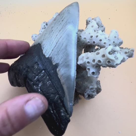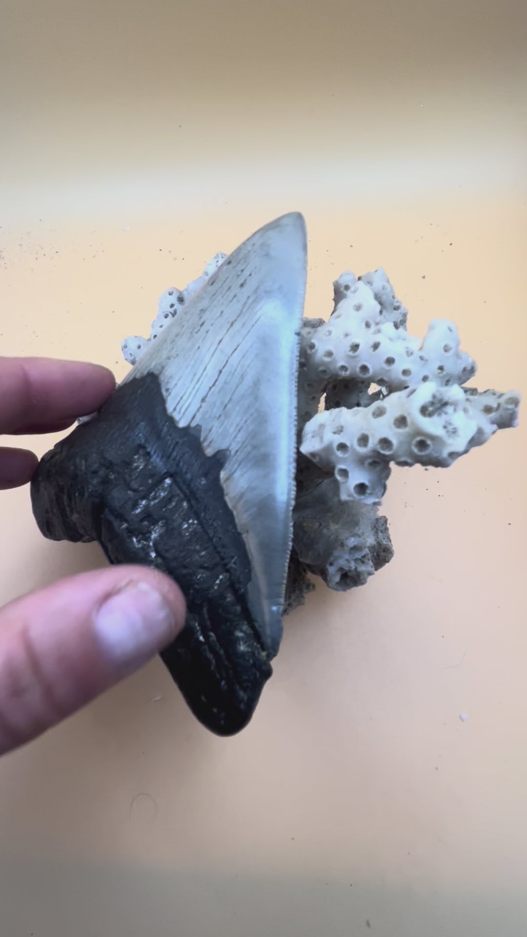 5.2” Megalodon Tooth from a 52’ prehistoric shark! Great size, nice bourlette & serrations. All teeth are hand recovered in 100+ feet of water by scuba divers off North Carolina. You’re the second human to hold this tooth! Check out Megalodon Tooth Huntress on social medias to see find videos. Tooth only; coral, calipers etc not included with tooth.